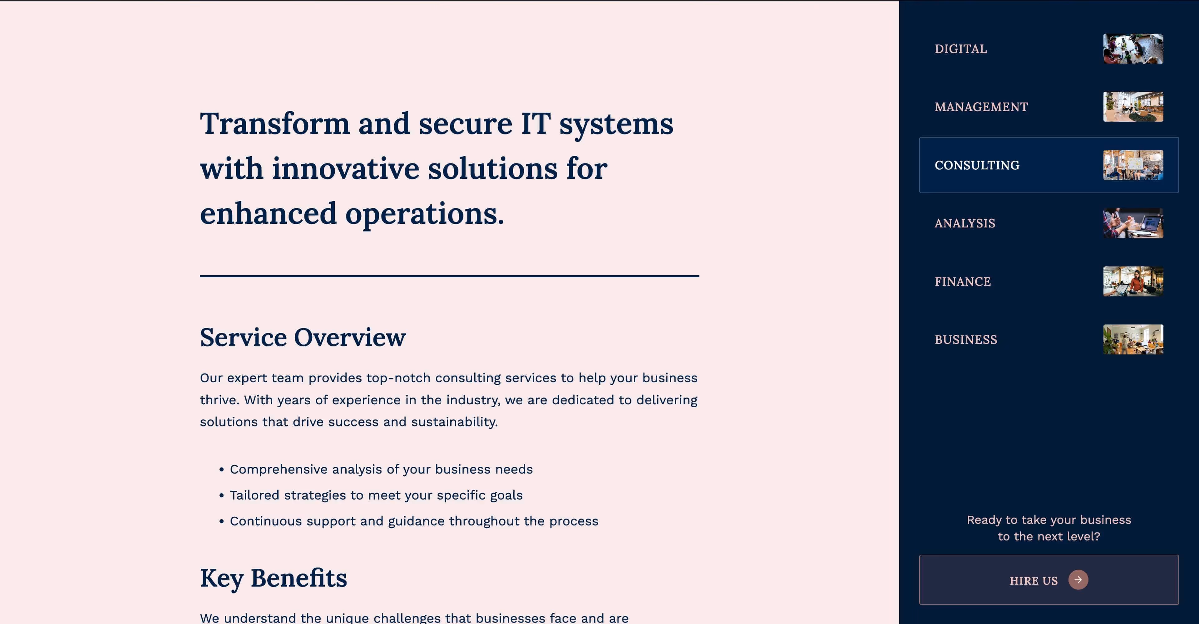 A classy-looking template for corporate or personal consulting business websites. With 20+ layouts, it's perfect for showcasing services, case studies, your team, and company. Includes ecommerce and blog designs.