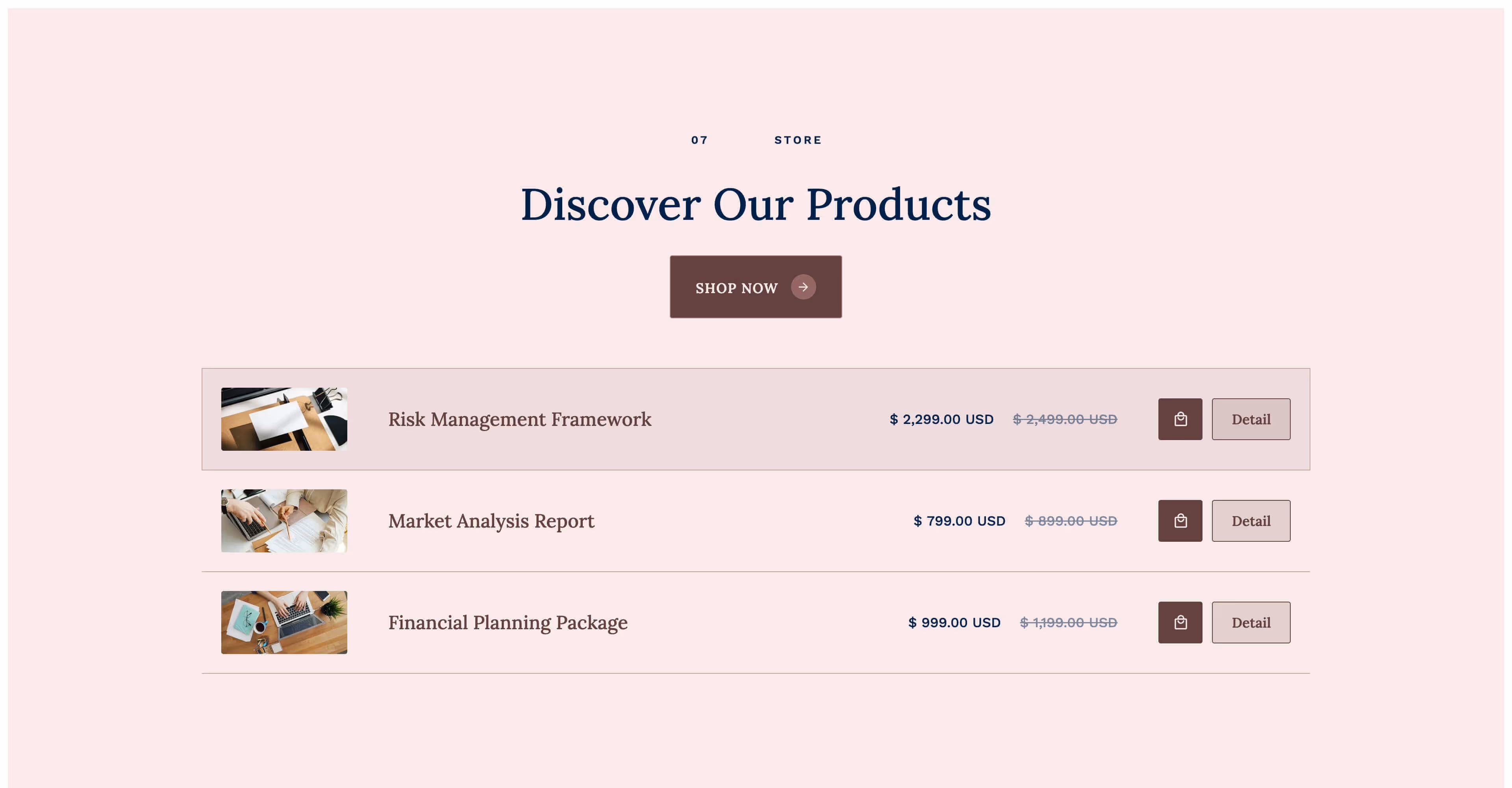 Ecommerce pages