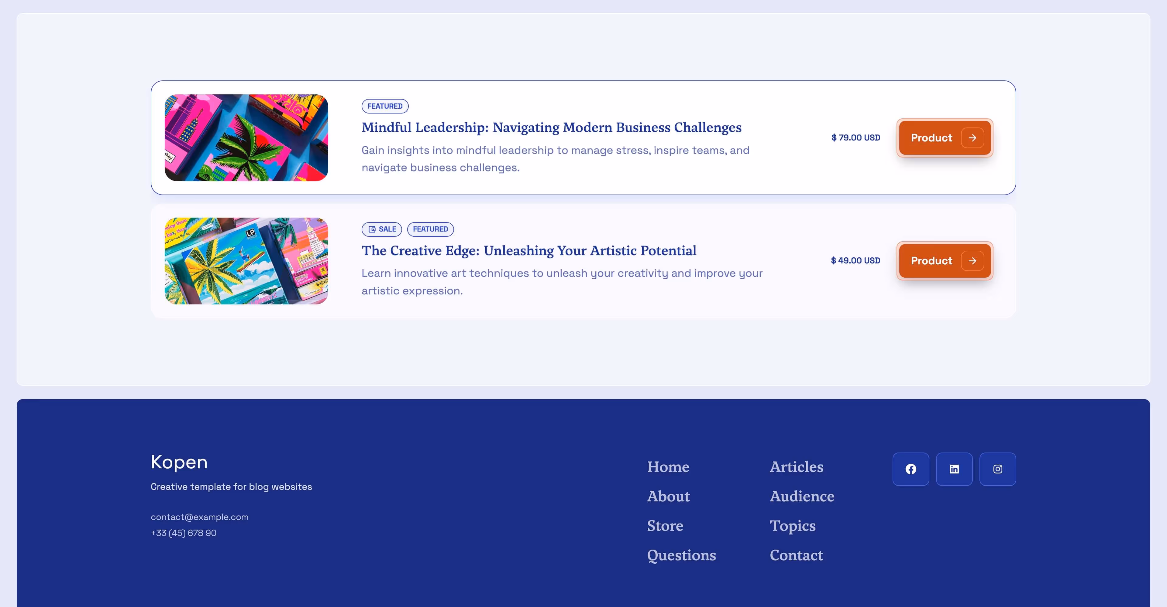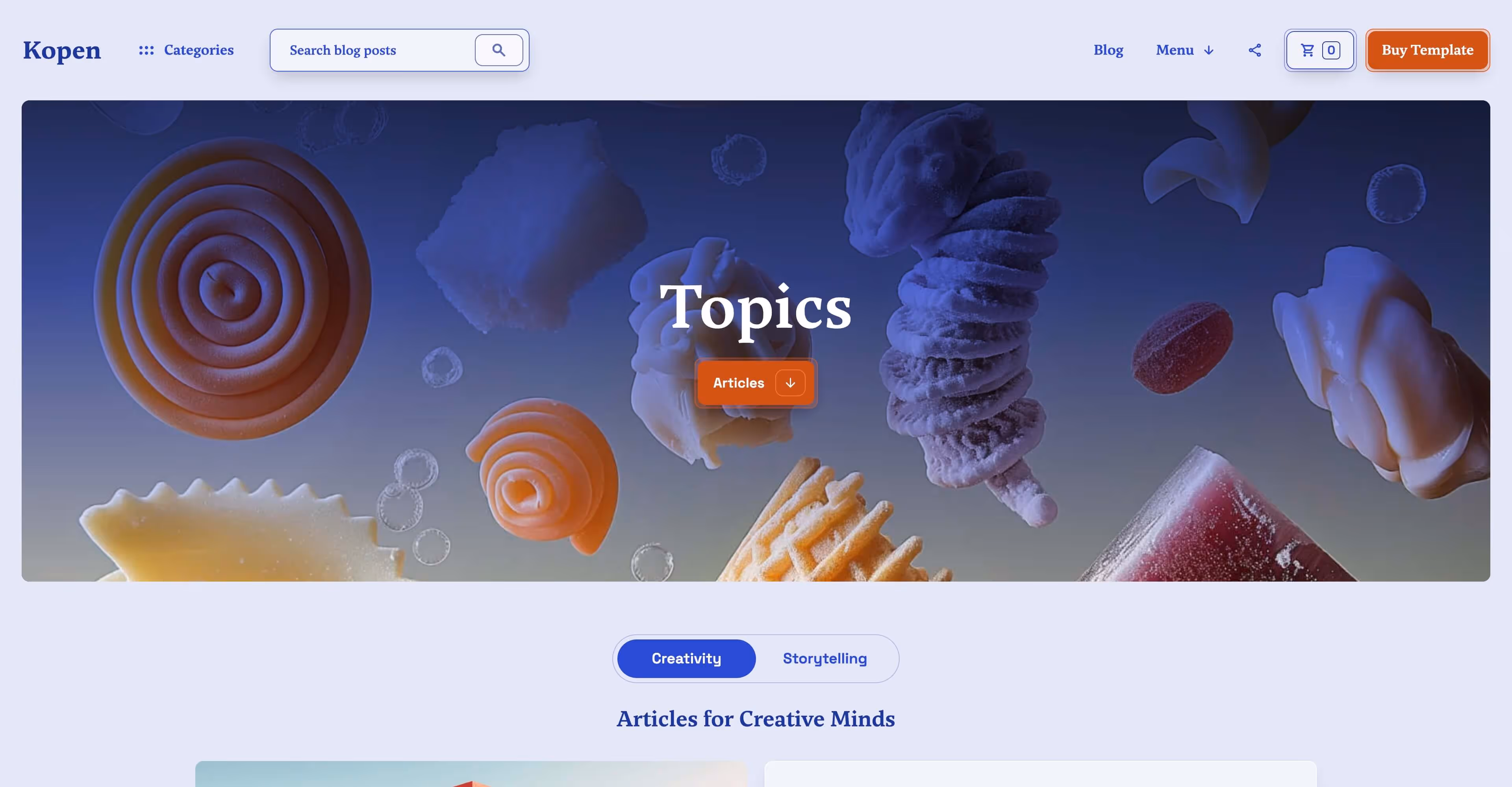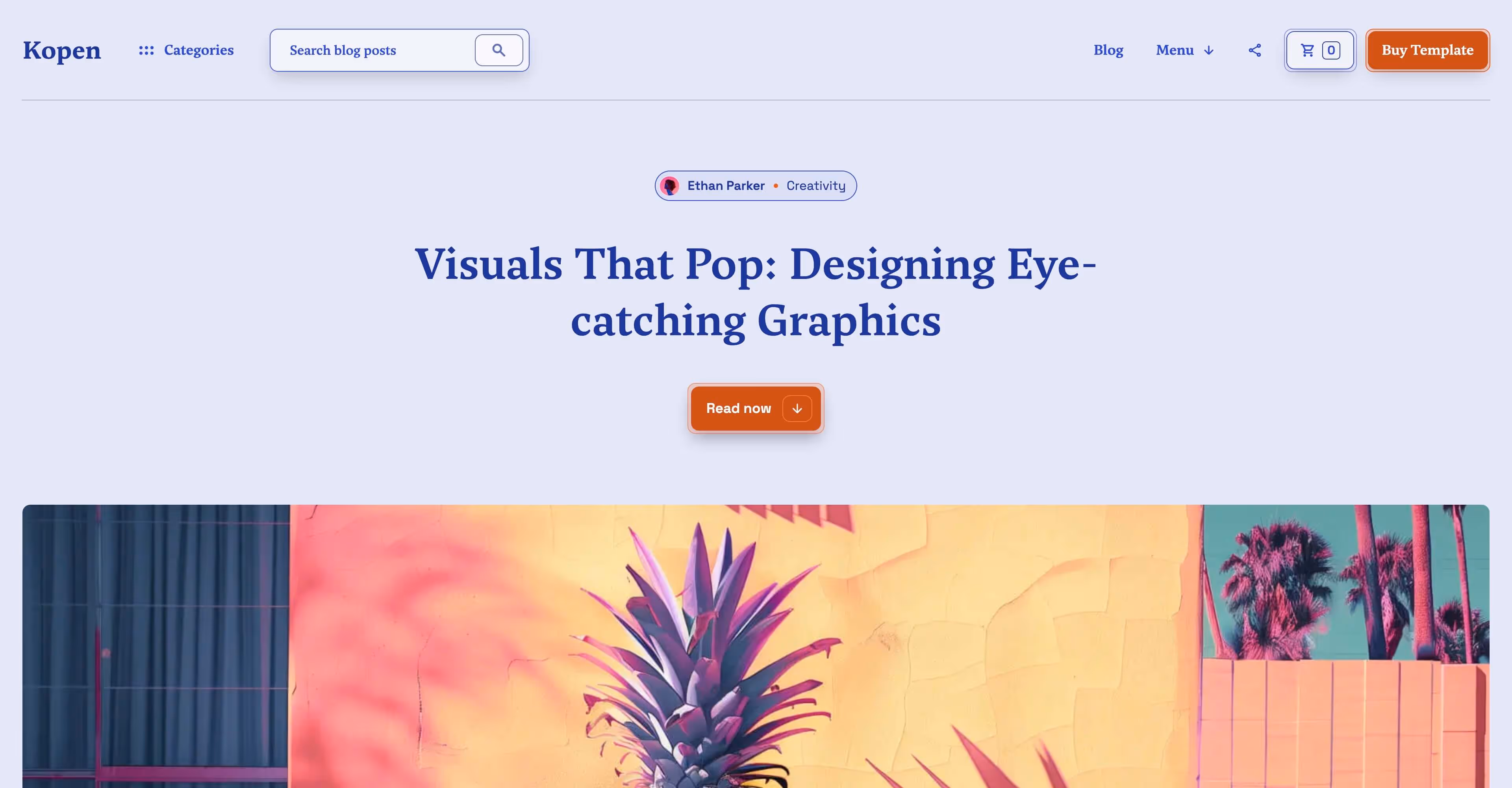 The blog template for casual and creative websites. Enjoy multiple design variations and over 20 pages designed with sleek, contemporary aesthetics. Enhance user experience with minimal interactions.