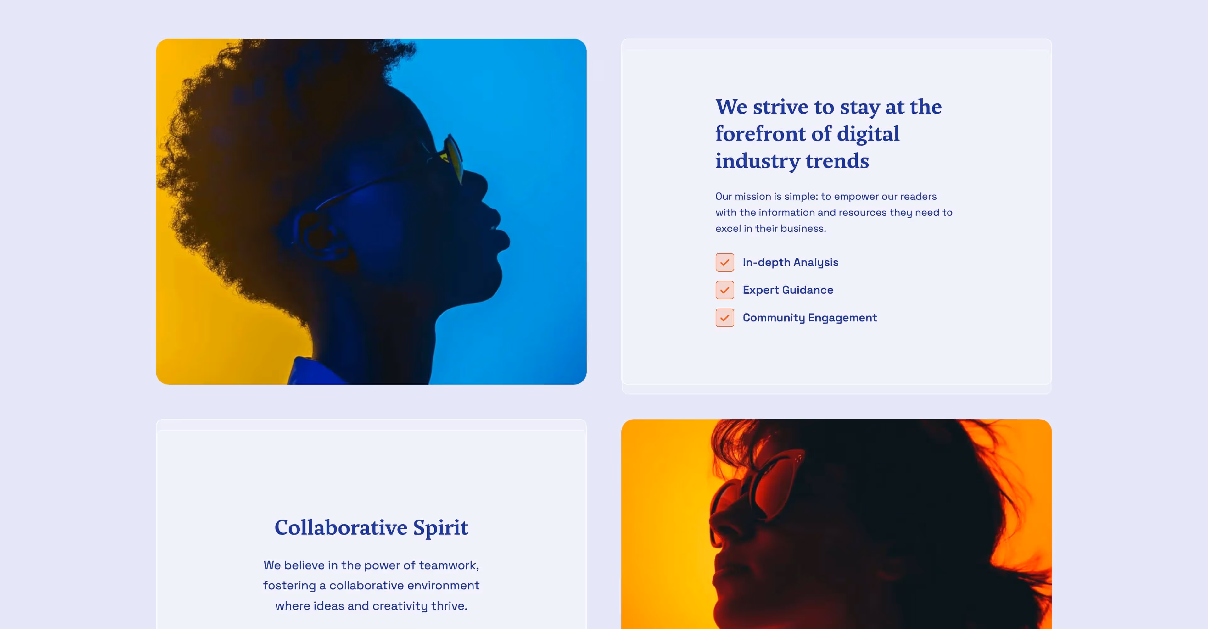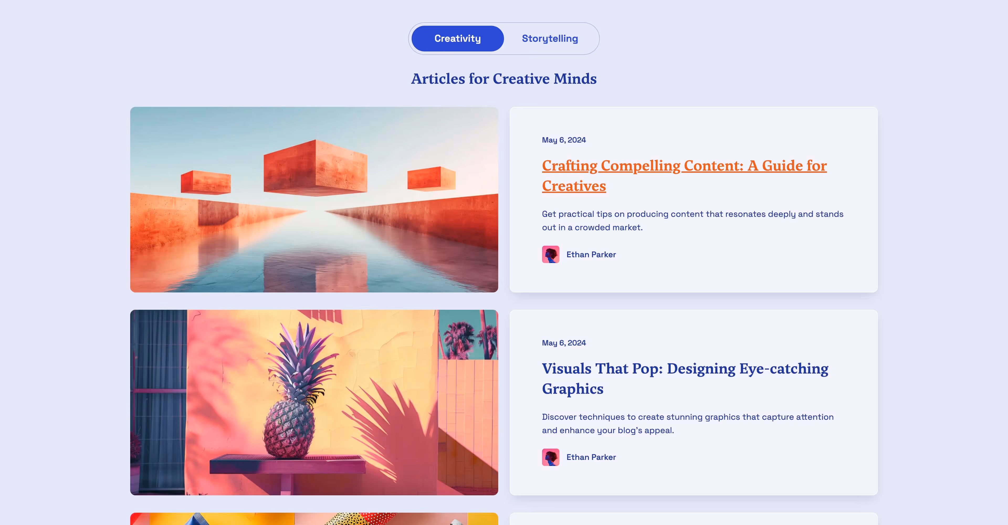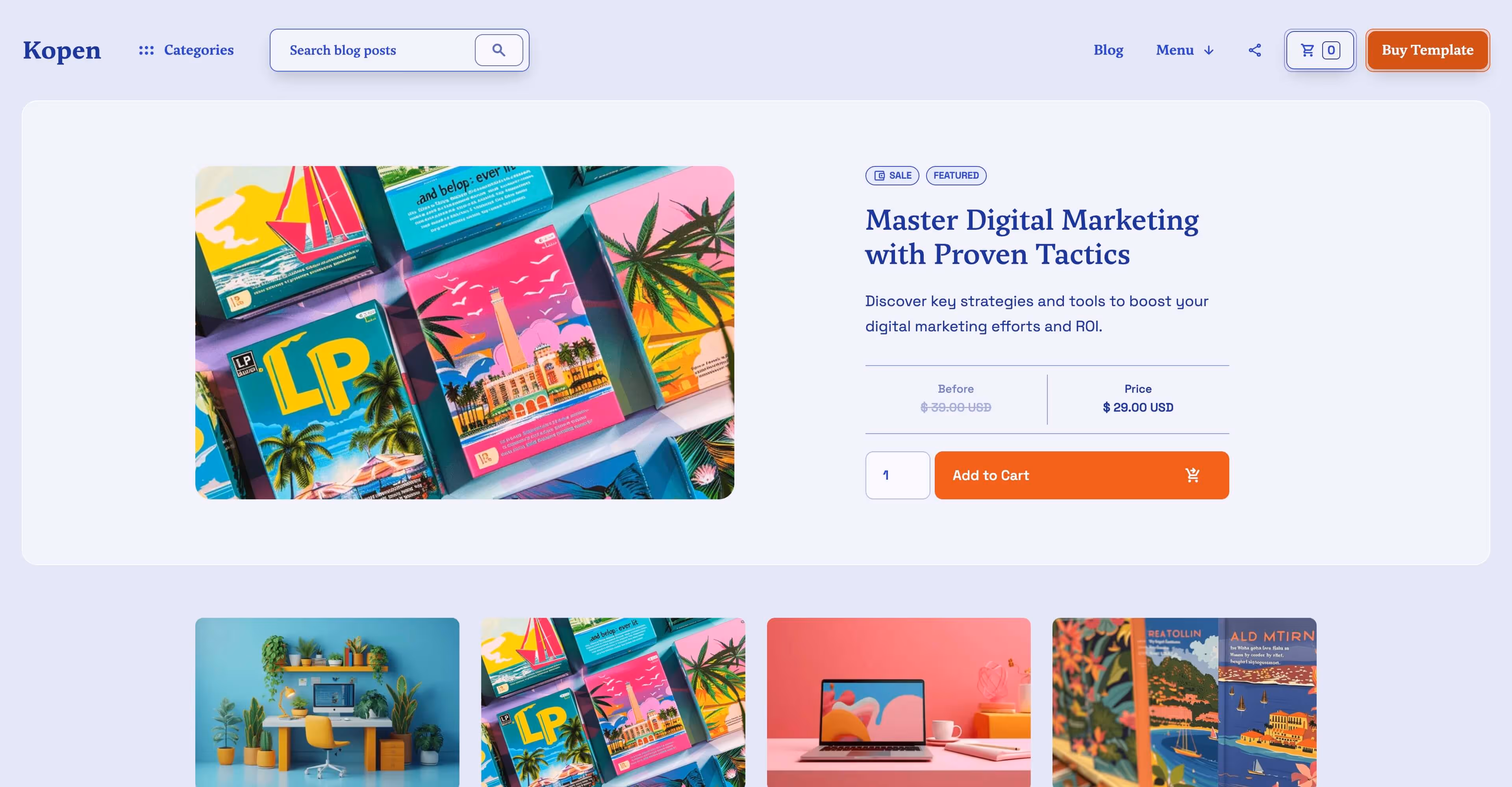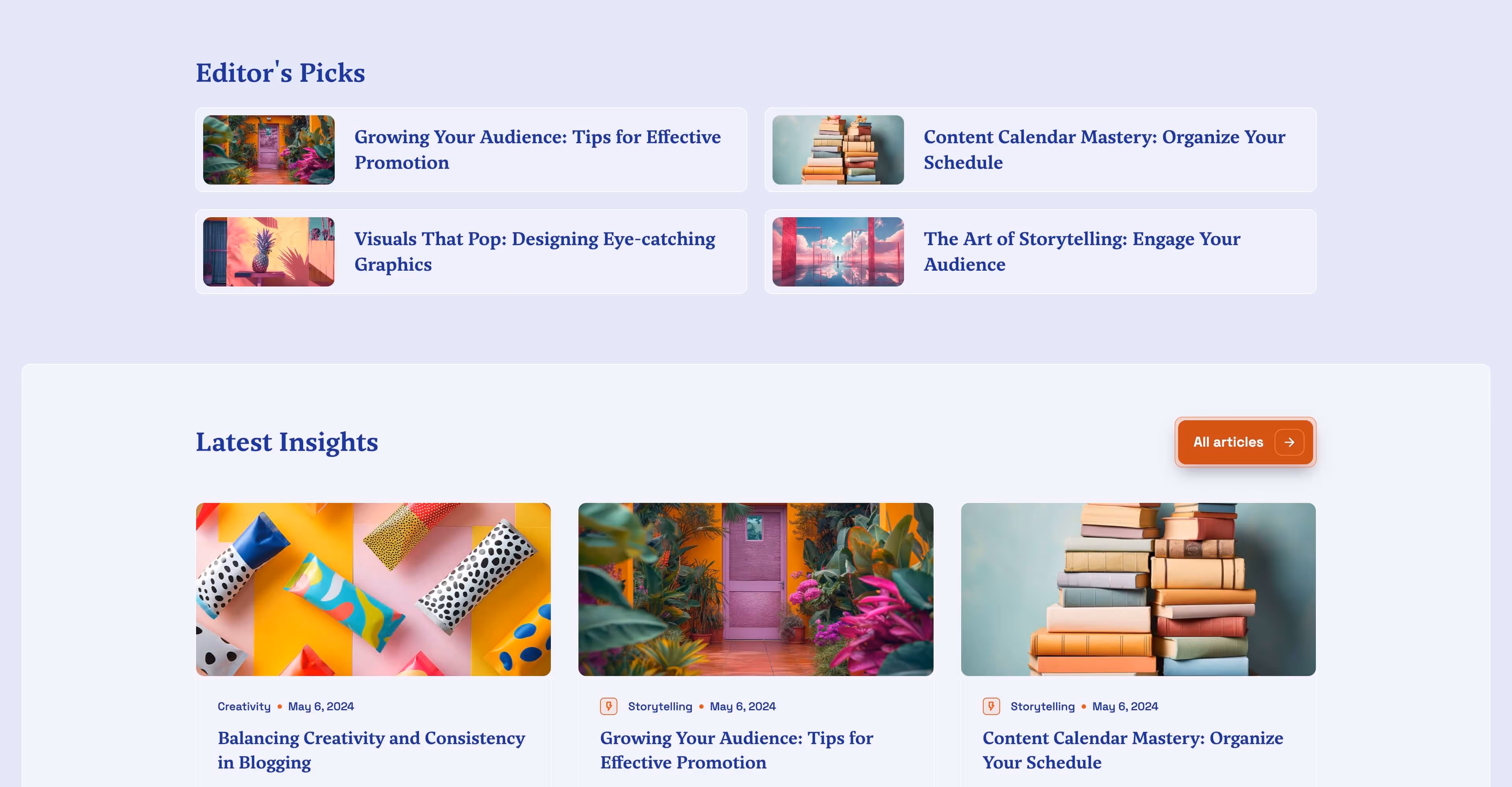 The blog template for casual and creative websites. Enjoy multiple design variations and over 20 pages designed with sleek, contemporary aesthetics. Enhance user experience with minimal interactions.