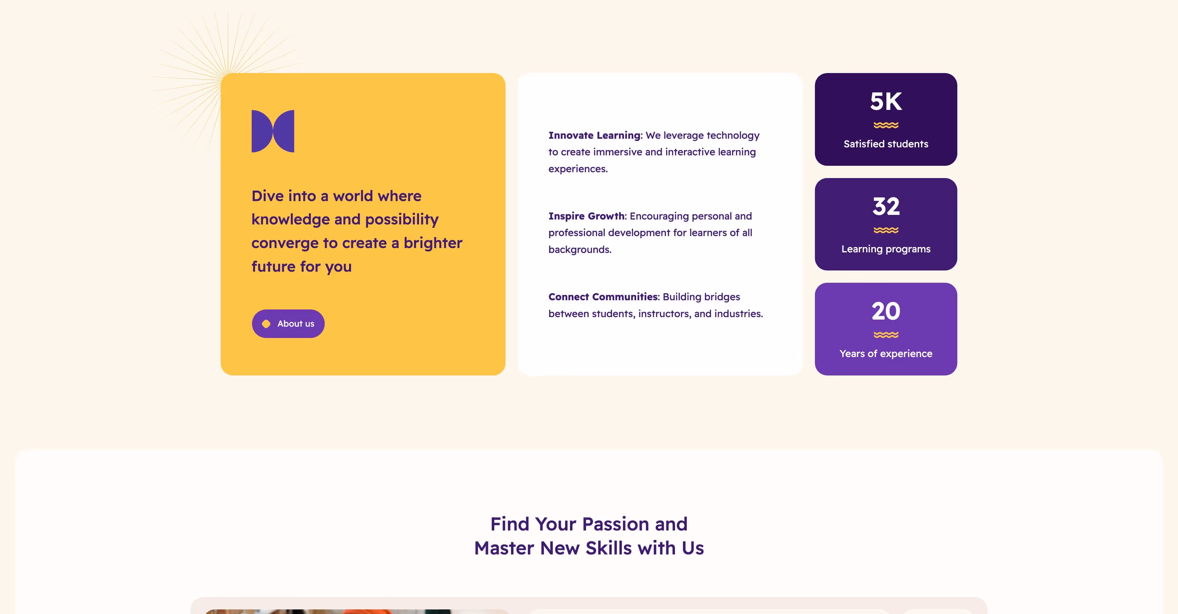 A vibrant Webflow CMS template ideal for education and learning companies, universities, colleges, and consulting agencies.